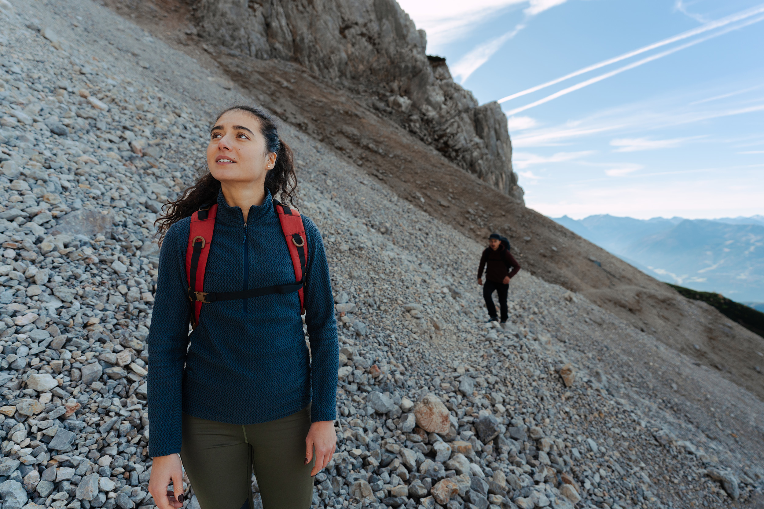"Jeg ved, hvilke scener jeg vil have," fortsætter Gabor. "Og jeg planlægger dagen således, at når vi går op, fotograferer jeg for det meste ovenfra, så jeg kan få den smukke dal bag mig med på billederne. Solen skal være det rette sted. Og når jeg går over til at fotografere nedefra, lyser det bjergtoppene op. Nogle steder løber jeg frem og tilbage og improviserer på det sted, vi har valgt. Det er 50 % forberedelse og 50 % inspiration. Vi bruger walkie-talkier til at instruere modellerne, fordi vi nogle steder kan være 40 meter væk," fortsætter Gabor. "Og ud over at vælge modeller, der er atleter og bevæger sig flydende og luftigt, skal jeg også selv være i god form for at kunne holde trit med dem! Jeg dyrker meget sport for at holde mig i form, for det ville være dumt, hvis modellerne skulle vente på fotografen hele tiden."