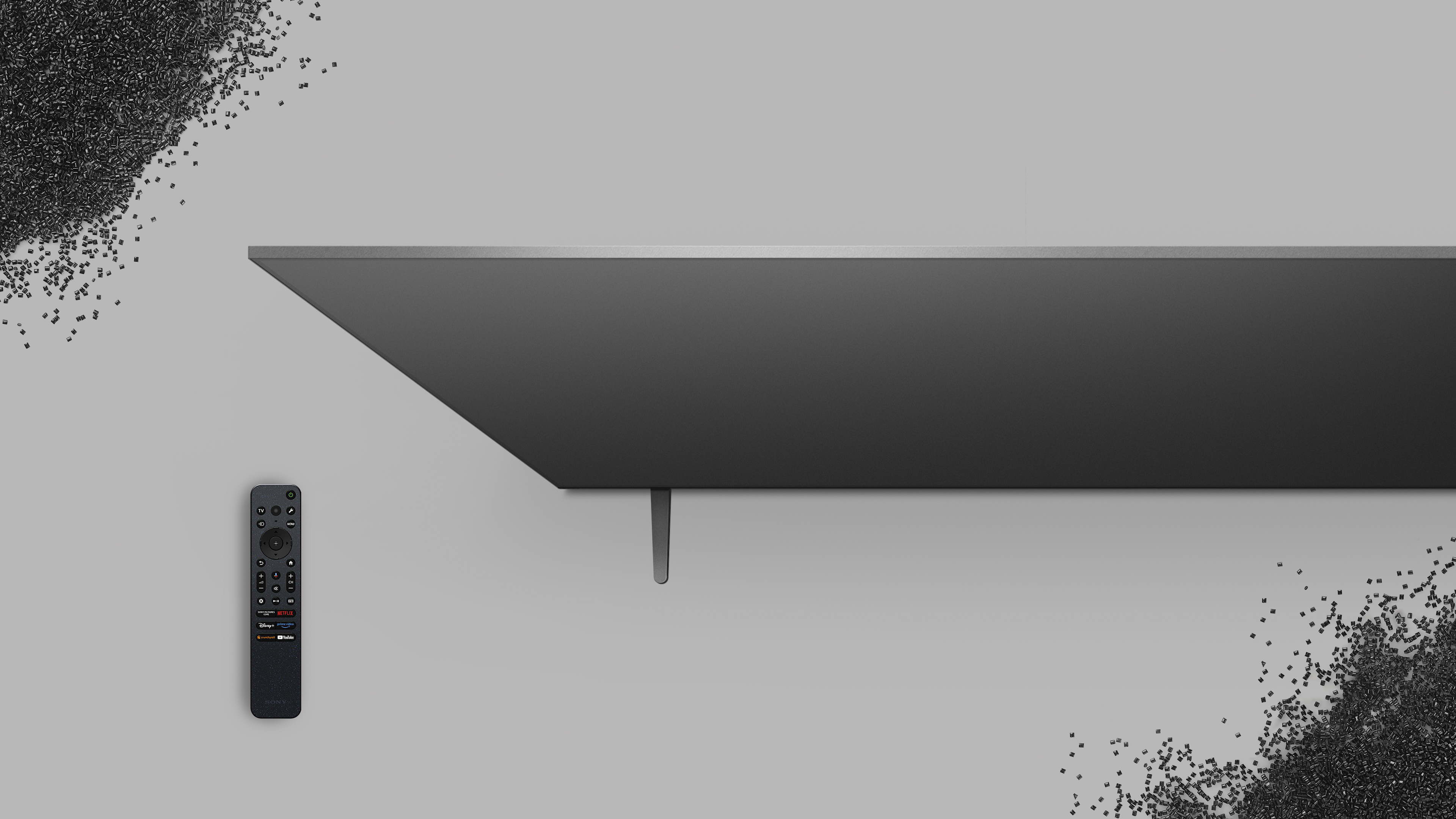 - At reducere brug af ny plastik: For at mindske miljøpåvirkningen arbejder Sony på flere områder af produktets livscyklus, herunder at reducere brugen af ny plastik, forbedre transporteffektiviteten og muligheden for at gennemgå energiforbruget under brug. Lige fra udviklingen af materiale til det ydre design er anvendelsen af genanvendte materialer øget betydeligt i den nye BRAVIA-serie, mens der bevares en høj kvalitet i finishen. F.eks. består 65 %18 af skærmens bagpanel19, der er skærmens største overfladeareal, af SORPLAS20, der er et genanvendeligt plastmateriale udviklet af Sony. Desuden består den kompakte og genopladelige Eco-fjernbetjening også af cirka 79,7 % genanvendt plast21. Ved at anvende SORPLAS™ har Sony øget anvendelsen af genbrugsmateriale uden at gå på kompromis med hverken design eller holdbarhed.