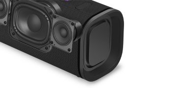 Teknologien i ULT FIELD 5 samarbejder harmonisk for at give en bedre lydkvalitet. X-Balanced Speaker Unit leverer dyb, dunkende bas og klare vokaler selv ved høje lydstyrker. En supereffektiv diskantenhed giver skarp og rummelig lyd ved høje frekvenser. Og de passive højtalerenheder er optimeret til imponerende basforstærkning og lyd uden forvrængninger. Sæt det hele sammen, så har du en fantastisk lyd, der er værd at dele med dine venner.