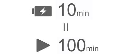 Med hurtigopladning kan du få 100 minutters spilletid med kun 10 minutters opladning