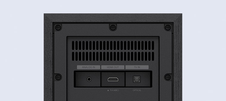 HT-S20R er næsten klar til brug lige ud af kassen. Bare slut den til, slut ledninger til din hovedhøjtaler og dine baghøjttalere via farvekodede forbindelser, placer din kablede subwoofer og baghøjtalerne, og nyd 5.1-kanalers ægte surroundlyd. HDMI ARC lader dig oprette forbindelse til kompatible TV med et enkelt kabel og dermed intet kabelrod. Er dit TV ikke kompatibelt med HDMI ARC? Nyd lyd i høj kvalitet i film og mere, når du forbinder den optiske indgang. Hvis HDMI ARC og den optiske indgang ikke er tilgængelige, så tilslut dit TV med den analoge indgang.
